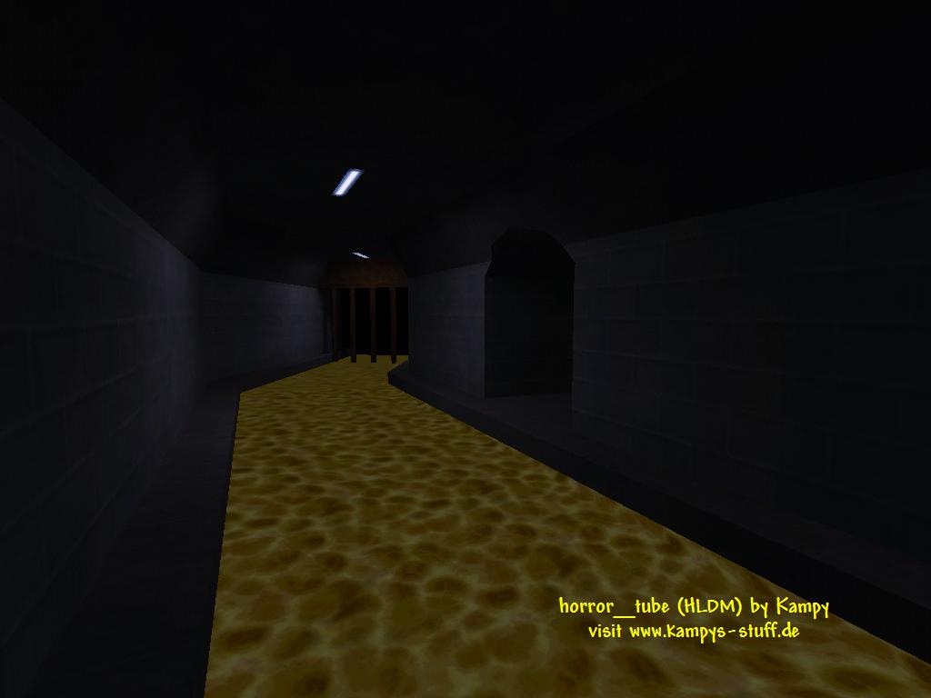 The theme of this small map is a kind of sewer maintainance area with a small part of the sewer and several rooms and corridors. The connectivity is limited. There is not much variation in where you can go except for the main corridor where you can choose between six doors of which four lead to dead end rooms with different functions. The battlefield of horror_tube is very tight. Small rooms and corridors make fighting really shocking. In the main hall with the four rooms connected to it you can perfectly camp with the crossbow if you turn out the light in the power room. Then automatically red emergency lights are activated which look pretty cool. Every of the four rooms has a function: 1) light swichtes for the four rooms 2) healthchargers, longjump 3) ammo for all weapons and HEV charger 4) main corridor lightswitch | |||||||||||||||||||||||||||||||||||||||||||||||||||||||||||||||||||||||||||||||||||||||||||||||||||||