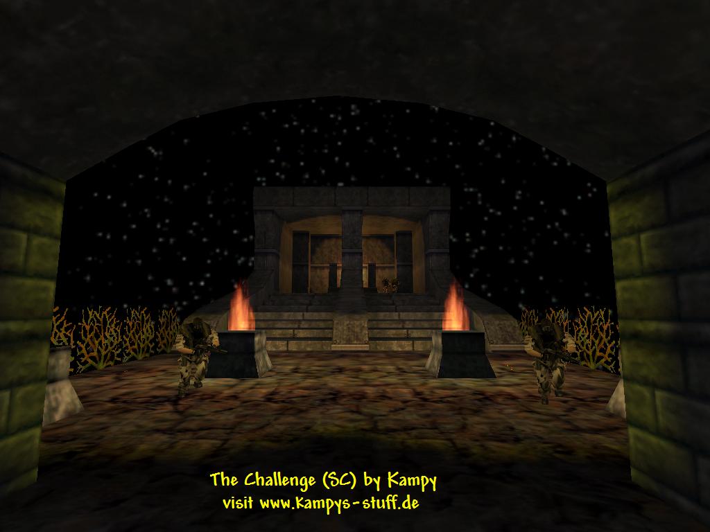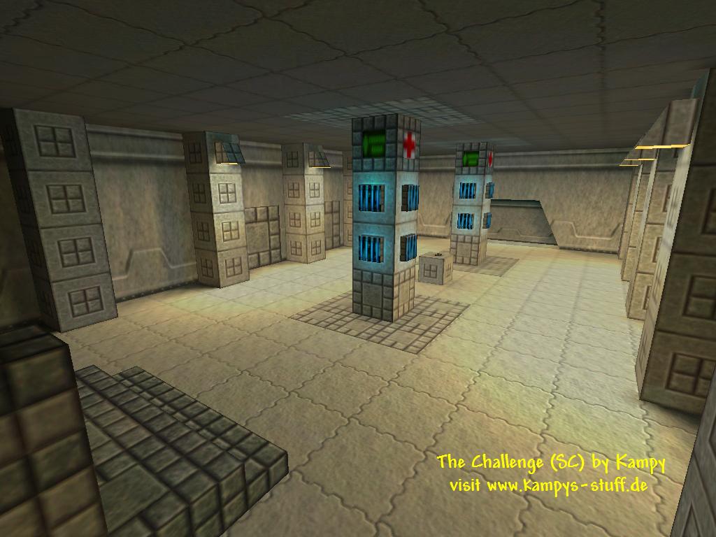 | The Challenge is my first serious attempt of making a great Svencoop map and Im pretty sure this is what you get when you download this map! The Challenge uses the maximum amount of entities possible with the HL engine. The main part of the map is a temple with 6 pillars and 6 teleporters. Each teleporter stands for an adventure or a task which you have to fulfill. When the job is done - for example to break a certain target - the teleporter is sealed and the pillar begins to shine. At the start you only have the crowbar. The first room inside the temple contains the glock and chargers for your health and HEV suit plus 6 doors. During the tasks you can find new weapons. Is a task finished one of the doors opens and reveals the weapon that could be found in this task. When all targets have been acchieved a big door opens and you can get some more action. You dont have to do the tasks in the same order everytime you play it, you can even chose if you team up on a mission or simply do several missions at the same time. Every mission has a totally different theme for example one is on a sailing ship. The whole map looks extremely cool and has lots of sounds and custom textures plus an alternative gameplay so I recommend this map to everyone who plays svencoop. It might be a little too easy for good players though. | |||||||||||||||||||||||||||||||||||||||||||||||||||||||||||||||||||||||||||||||||||||||||||||||||||||