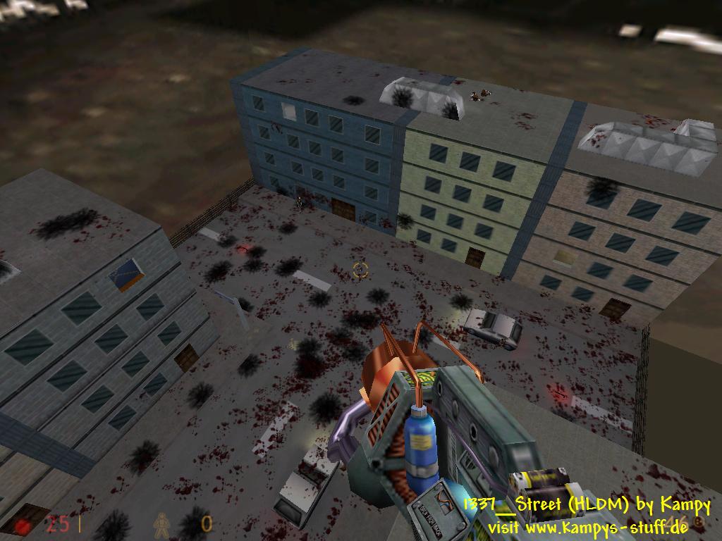 main points of the map: - gauss jumping a lot, nice street-theme - consists of 7 houses 4 of which can be entered + a street with 2 cars - 2-4 players recommended - hectic gameplay, tiny map size, basically one big room - no glueon, no beegun hints: - you can enter the houses by touching the doors - doors which cant be entered have a broken-decal on it - windows that can be broken have a broken-decal on it - to get the LongJump leave a house through the door - entering a house gets you: crossbow + ammo, 1x healthkit + battery - if you wanna be good in this map you should know how to gauss jump | |||||||||||||||||||||||||||||||||||||||||||||||||||||||||||||||||||||||||||||||||||||||||||||||||||||
