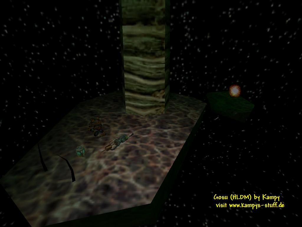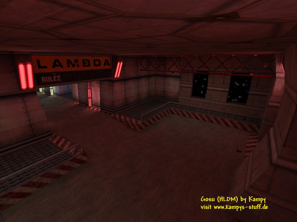 This is a medium size map with a lab/xen theme. The grafic looks pretty cool even if there are hardly any custom textures. There are several funny features in Gosu like a transporter which beams you into the xen world where you can find a dead HEV suit guy with the taucannon or a bathroom where a scientist is sitting on the toilet and telling you a funny sentence when you come near. Another cool part of the map is the included alien environment inside the lab where the gman whatches the behaviour of an alien (there are some monsters included which dont attack you). The map just looks great - there are cool light effects and architecture plus some cool chargers. | |||||||||||||||||||||||||||||||||||||||||||||||||||||||||||||||||||||||||||||||||||||||||||||||||||||
