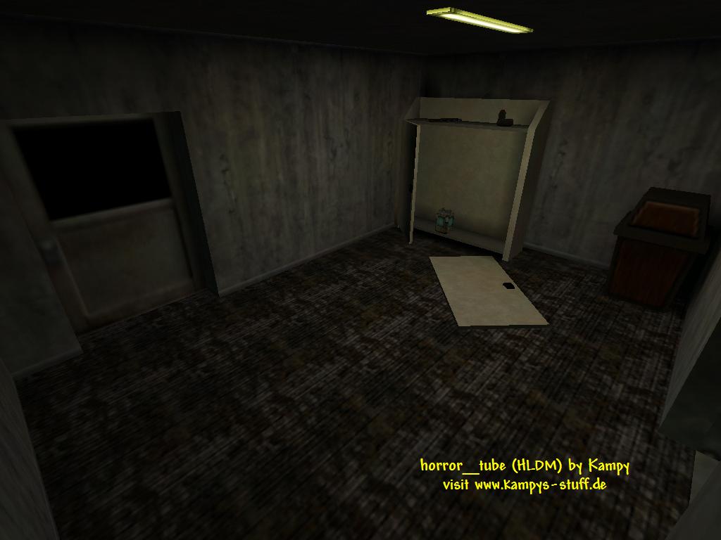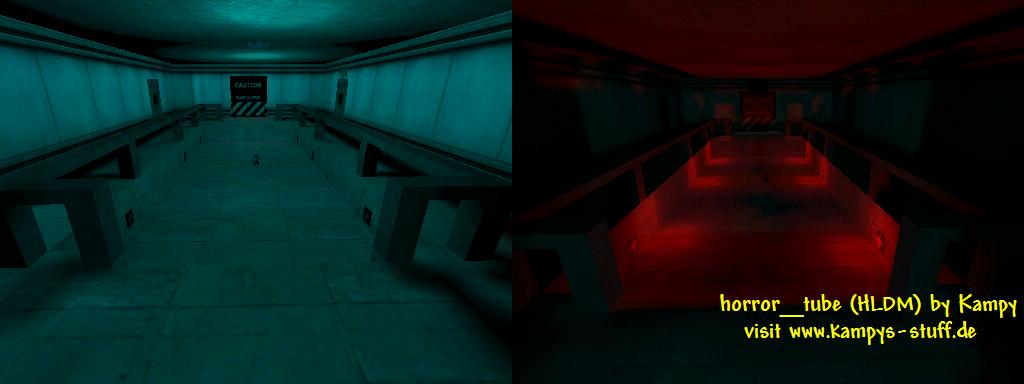 The theme of this small map is a kind of sewer maintainance area with a small part of the sewer and several rooms and corridors. The connectivity is limited. There is not much variation in where you can go except for the main corridor where you can choose between six doors of which four lead to dead end rooms with different functions. The battlefield of horror_tube is very tight. Small rooms and corridors make fighting really shocking. In the main hall with the four rooms connected to it you can perfectly camp with the crossbow if you turn out the light in the power room. Then automatically red emergency lights are activated which look pretty cool. Every of the four rooms has a function: 1) light swichtes for the four rooms 2) healthchargers, longjump 3) ammo for all weapons and HEV charger 4) main corridor lightswitch | |||||||||||||||||||||||||||||||||||||||||||||||||||||||||||||||||||||||||||||||||||||||||||||||||||||